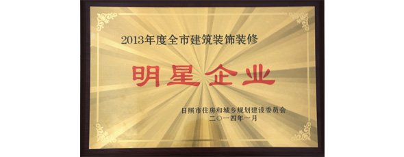 華業玻璃被日照市住房和城鄉規劃建設委員會授予“2013年度全市建筑裝飾裝修明星企業”。