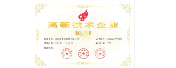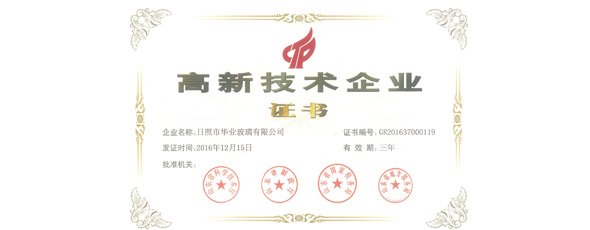 華業玻璃被認定為“高新技術企業”。