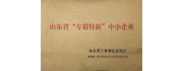 被山東省工業和信息化廳認定為“專精特新”中小企業
